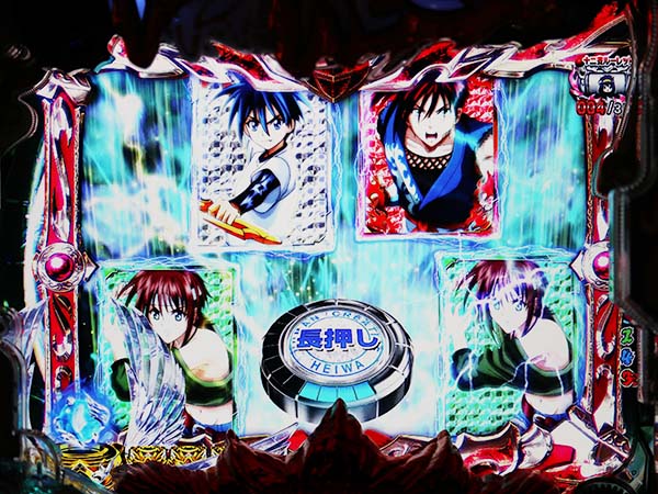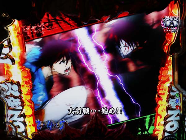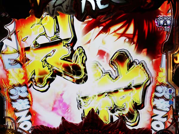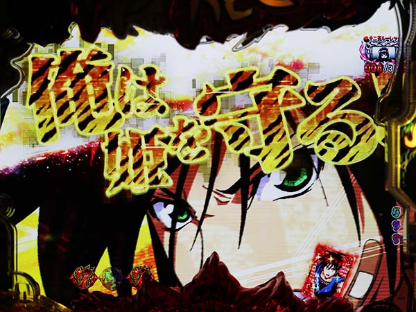リーチ中にタイトルロゴ役物落下で後半に発展。