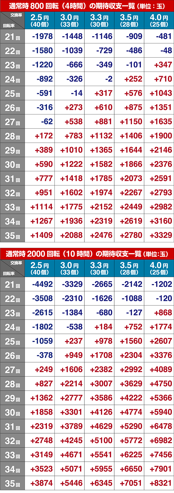 ※電サポ中の出玉増減-10%、通常時10万回転から算出