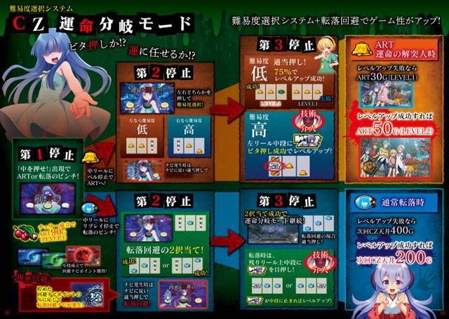 本機のゲーム性は3種類のボーナスとARTを絡めて出玉を増やす初代のシステムを再現し、ART突入か転落かを決定するお馴染みのCZ「運命分岐モード」も同様に搭載している。