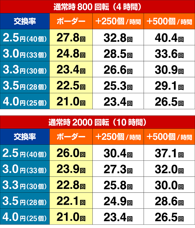 ※電サポ中の出玉増減なし、通常時2000回転(10時間)から算出
