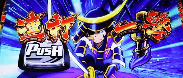 ベル入賞時のリール停止ごとに政宗のエフェクトが発生すると、報酬格上げのチャンス。