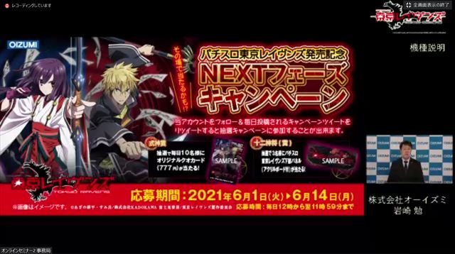 2021年6月7日、株式会社オーイズミは新機種『パチスロ東京レイヴンズ』のオンラインプレス説明会を開催した。