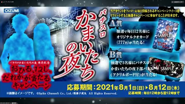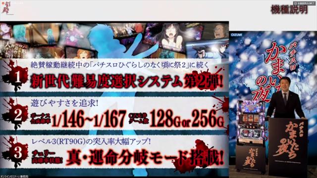 2021年8月6日、株式会社オーイズミは新台『パチスロかまいたちの夜』のプレス説明会をオンラインにて開催した。