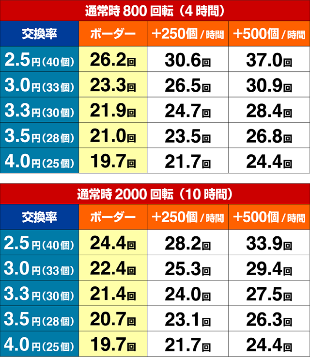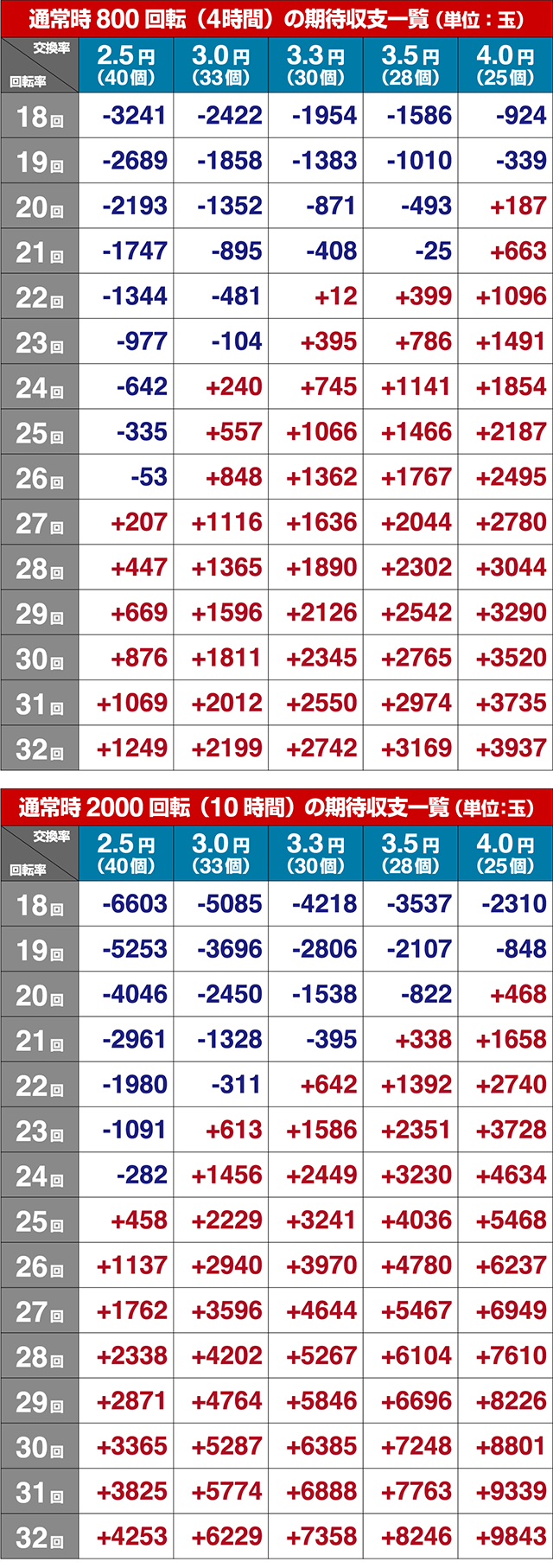 ※電サポ中の出玉増減-10%、通常時2000回転(10時間)から算出