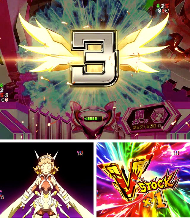 液晶上は、カウントダウンが0になったあとに絶唱演出を経由してV-STOCKを獲得演出が発生する。