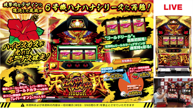 2021年9月21日、株式会社パイオニアは新機種『ハナハナホウオウ〜天翔〜 / ハナハナホウオウ〜天翔〜-30』のオンライン発表会を開催した。25φをリリースするハナハナとしては『グレートキングハナハナ』以来、4年ぶりとなる。