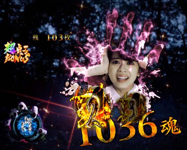 通常時はレア役やゲーム数消化、亡魂ポイント(逆押しナビ時に獲得)でCZを抽選。 CZをクリアして貞子ボーナスを目指し、貞子ボーナスを3回ループさせてメインAT「超貞子ボーナス」を目指すゲーム性だ(ボーナス直行もあり)。 超貞子ボーナスは差枚数管理型ATで、1Gあたりの純増は約6枚。消化中は直乗せや特化ゾーンによる差枚数上乗せが抽選される。超貞子ボーナス終了後は15G間のST型引き戻しゾーン「貞子接近ZONE」へ突入。この区間も純増約6枚/Gで、引き戻し成功後は必ず超貞子ボーナスへ突入するため、減算なしのループで出玉を増やすことができる。 |