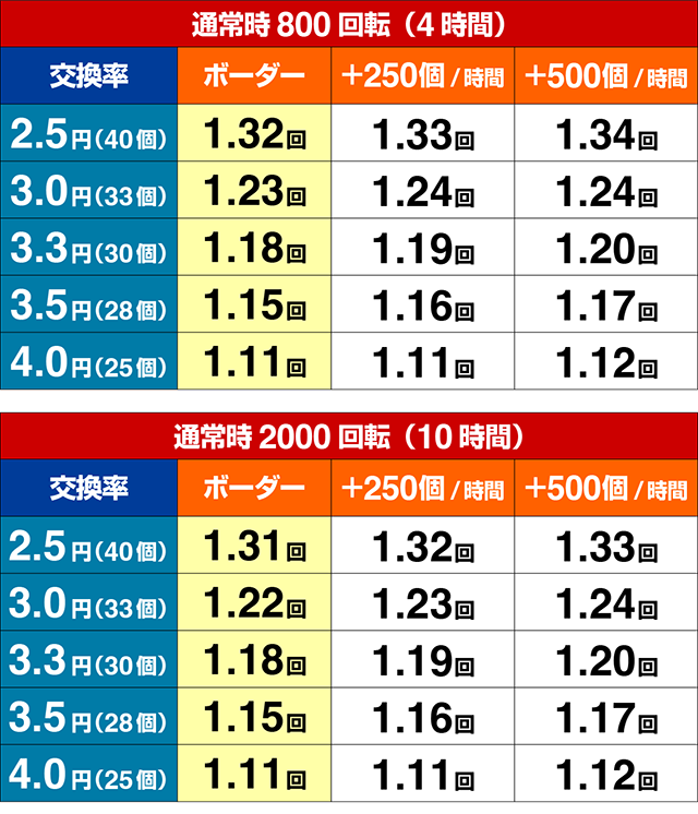 ※電サポ中の出玉増減なし、通常時2000回転(10時間)から算出