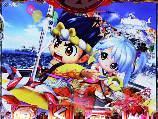 液晶右側にたぬきが登場し、たこ焼きが完成すると文字が出現。好機は当たれば確変図柄揃い濃厚で、激熱なら出現した時点で確変図柄揃い濃厚!