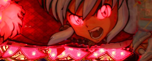 ストック放出時に液晶が暗転して暴走した犬夜叉が登場!! 犬夜叉暴走が発生した際の獲得期待出玉は9000個以上(暴走終了後のストックタイムでの獲得期待出玉を含む)を誇る。