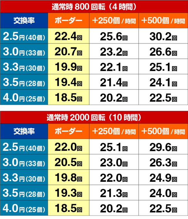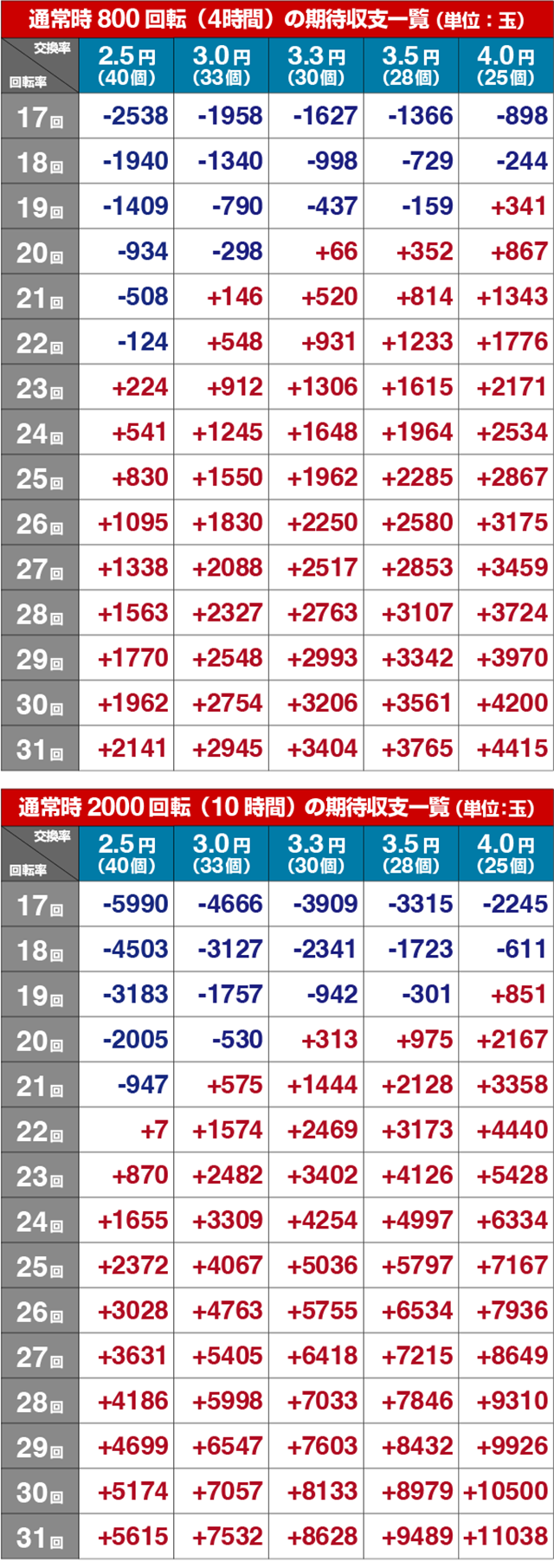 ※電サポ中の出玉増減なし、通常時2000回転(10時間)から算出