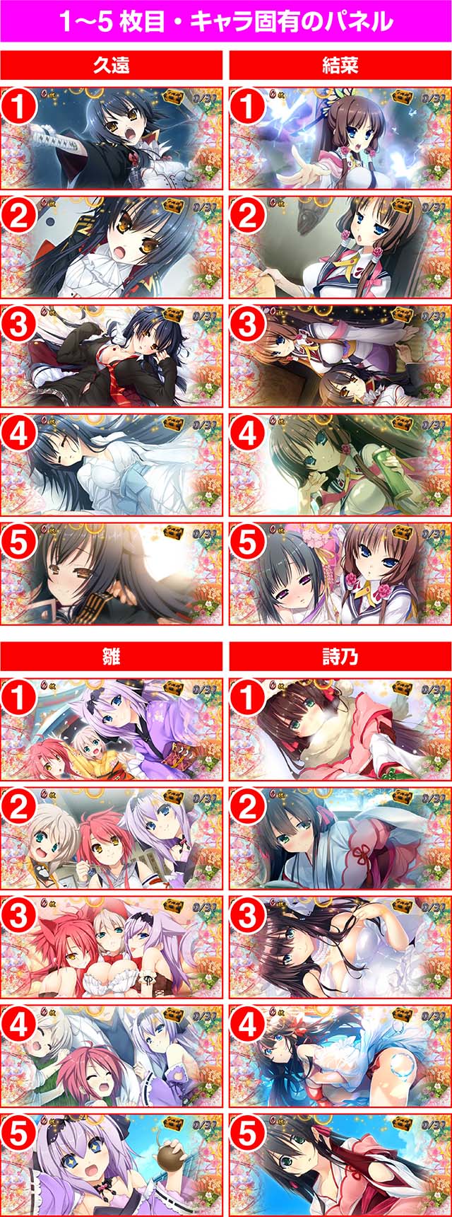 REG中キャラ紹介の最初の4人はAとBの2種類のシナリオで決まっていて、Bなら偶数設定示唆。シナリオ共通で、5人目に誰が紹介されるかが高設定や特定設定示唆ポイントになる。