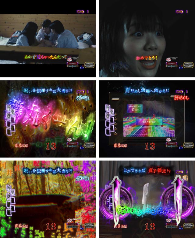 ラウンド中に貞子が登場すれば呪いの始まりに突入濃厚。ボタンが出現した場合は昇格のチャンスで、文字付きのボタンアイコンなら昇格期待度アップ。画面が割れるサプライズ衝撃演出も昇格濃厚!