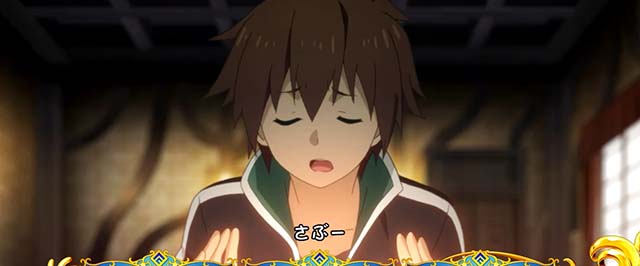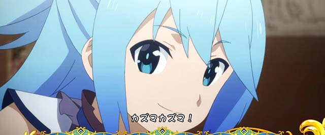 ・良いとこ 当たり方の演出が豊富 ビッグが早めに連チャンすればAT数も増える 通常時どのリールから押してもok ・悪いとこ あまりチェリーから発展しないくせに発展しても普通にハズれる レア役(特にチャンス目)がやけに偏る そのため何も起こらずハマるとステージ移行しないのでソファで寝てるカズマをずっと見続けないといけない バケの枚数が少ない AT中の演出タイプを3つ選べるが…通常モード要らんでしょ! 実質2つやんけ