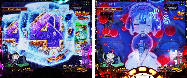 10R×2回獲得濃厚のBONUSで、1回目の10R消化後は実質連チャン濃厚状態のアビスの祝福に移行。ラウンド中に流れるムービーは、大当り1回目と2回目で関係性を持つエピソードになる。