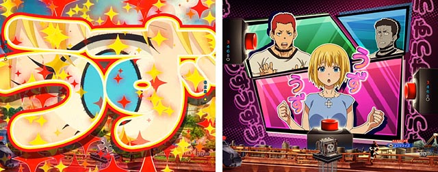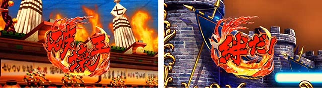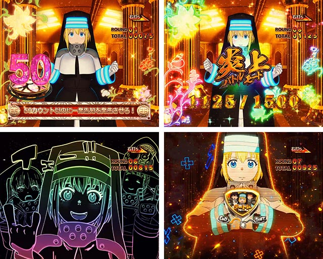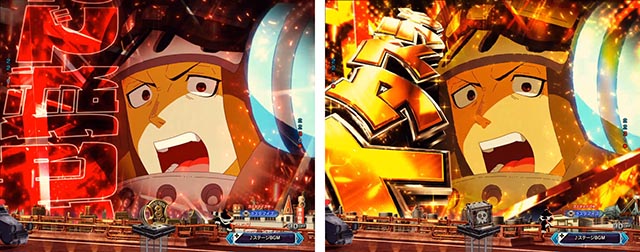 超炎上BURSTの告知タイミングは多数。獲得告知や上乗せ告知の映像は選択キャラに対応している。
