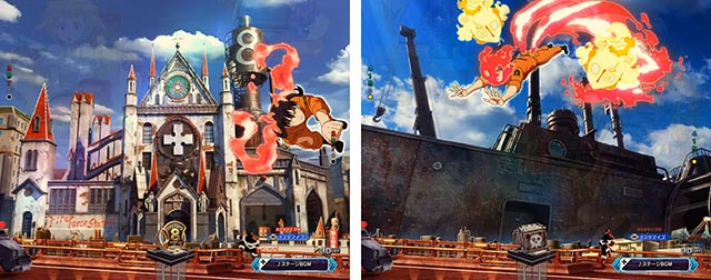 炎上バトルモード中は伝導者一派とのバトル演出。ショウやインカの登場はほとんどない(ショウはシンラ選択時の仲間参戦で登場)。