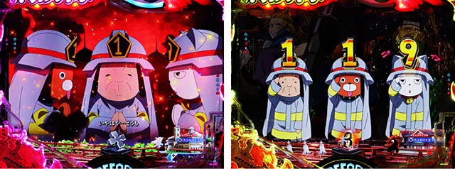 通常時に登場するのは第8特殊消防隊のメンバーが中心で、第7特殊消防隊の紅丸はチャンスパターンや高信頼度演出での登場が多い。アイリスもアツいパターンとして位置付けされる演出が多数!