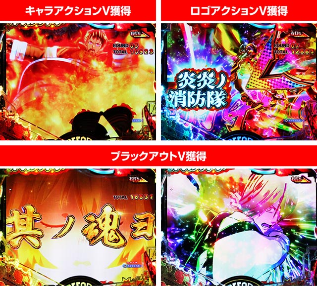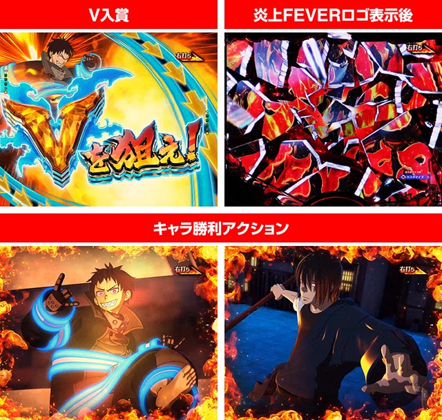V入賞時・炎上FEVERロゴ表示後・キャラ勝利アクション後 2Ror3Ror4Ror5R目開始時 |
