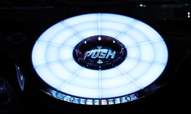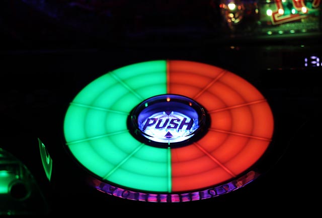通常時の図柄揃い後はボタンPUSHでBONUSの種類を告知。