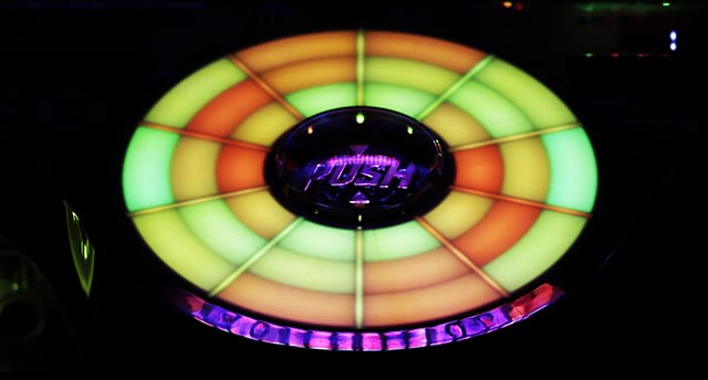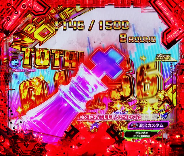 NO BONUS NO LIFE HYPER消化中はラウンド中にタッチすると、役物が動いてイルミが発光。虹の発光ならVストック獲得濃厚!