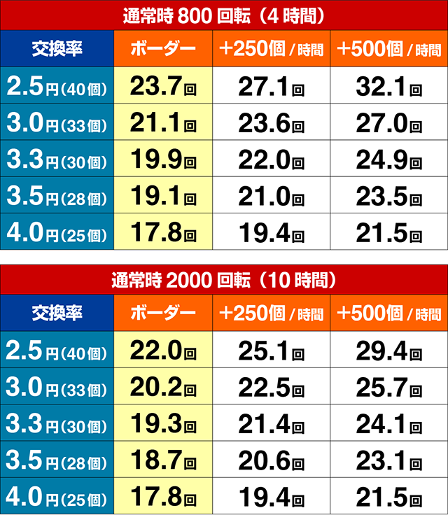 ※電サポ中の出玉増減-5%、通常時2000回転(10時間)から算出