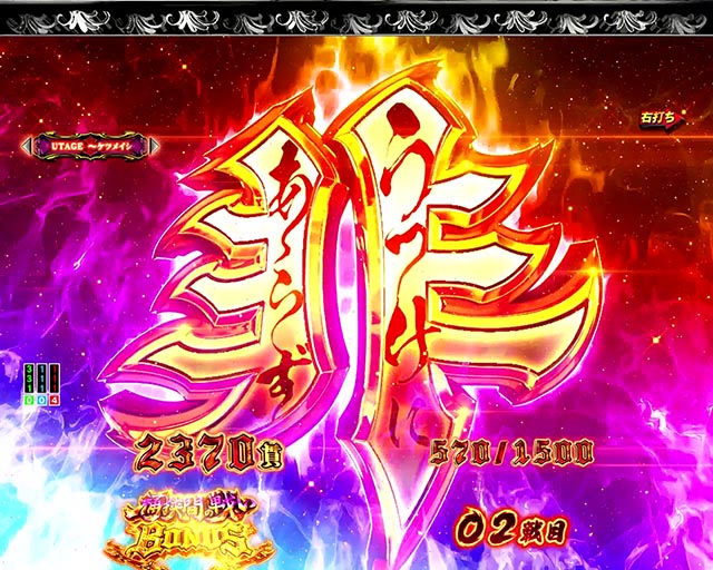 特化ゾーンの分岐的な役割があり、ラウンド中演出に成功すれば(極)戦極最強の刻に突入。失敗時は通常時にもどる。