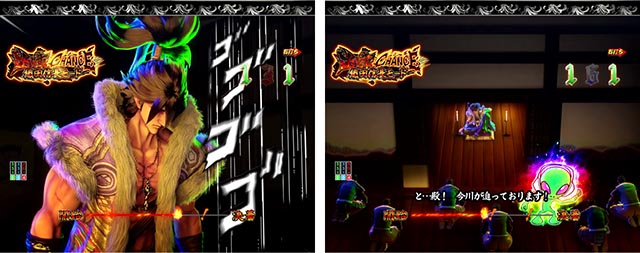 ラウンド後は出陣CHANCEが必ず発生して、突破すれば連チャンゾーン突入(桶狭間の戦いBONUS獲得)。