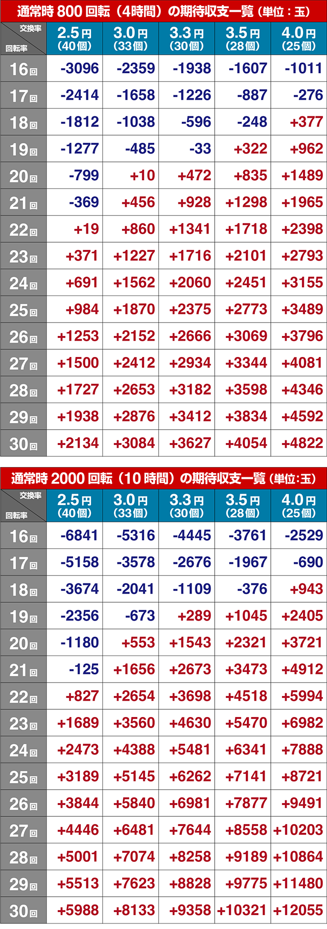 ※電サポ中の出玉増減-5%、通常時2000回転(10時間)から算出