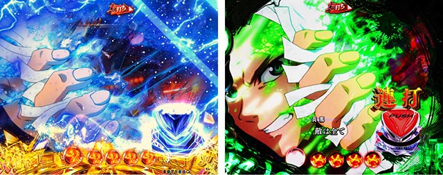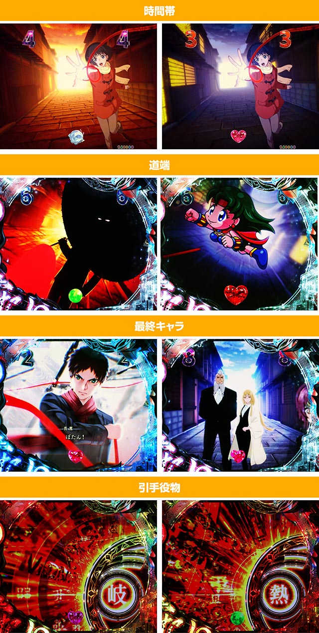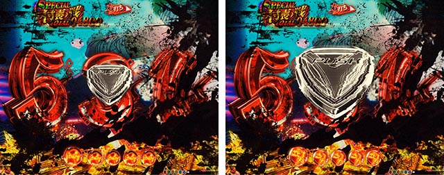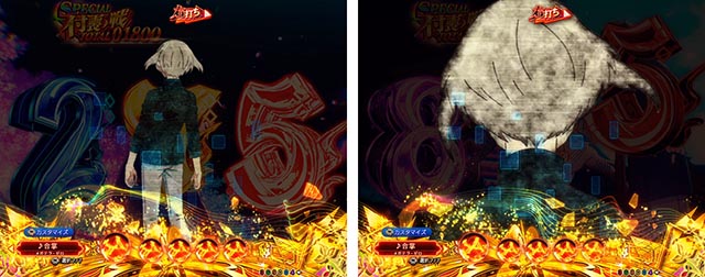 ●初当り後は約25.5%で連チャンゾーン突入 ●連チャンゾーン突入=ラッキートリガー発動 ●ラッキートリガー発動確率約1/588 ●連チャンゾーンは転落タイプ ●右打ち中大当りの約50%が出玉3000個以上 ●神髄JUDGE発生で出玉3000個or6000個(割合は50%づつ) ※転落確率…約1/111 |