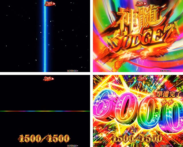 神髄JUDGEの有無で出玉が変わり、発生なしだと1500個。神髄JUDGE発生時はトータル獲得出玉が3000個以上!