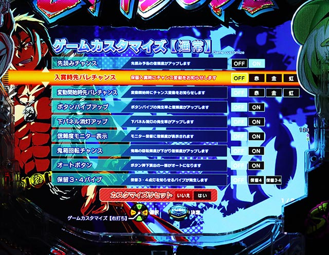 演出のバランス変更や先バレ演出追加にくわえて、ボタンPUSHの自動化と規定保留到達時のバイブ機能(通常時限定)も設定可能。