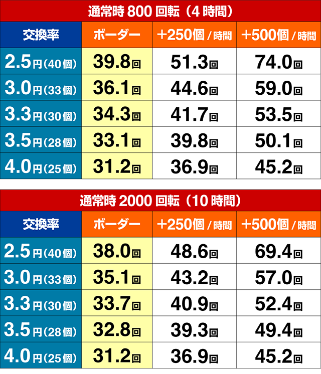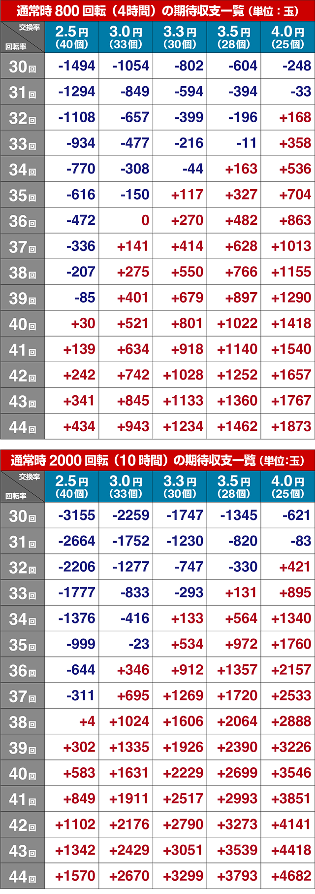※電サポ中の出玉増減-5%、通常時2000回転(10時間)から算出