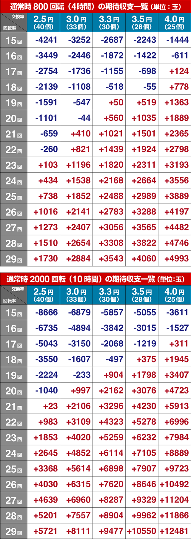 ※電サポ中の出玉増減-5%、通常時2000回転(10時間)から算出