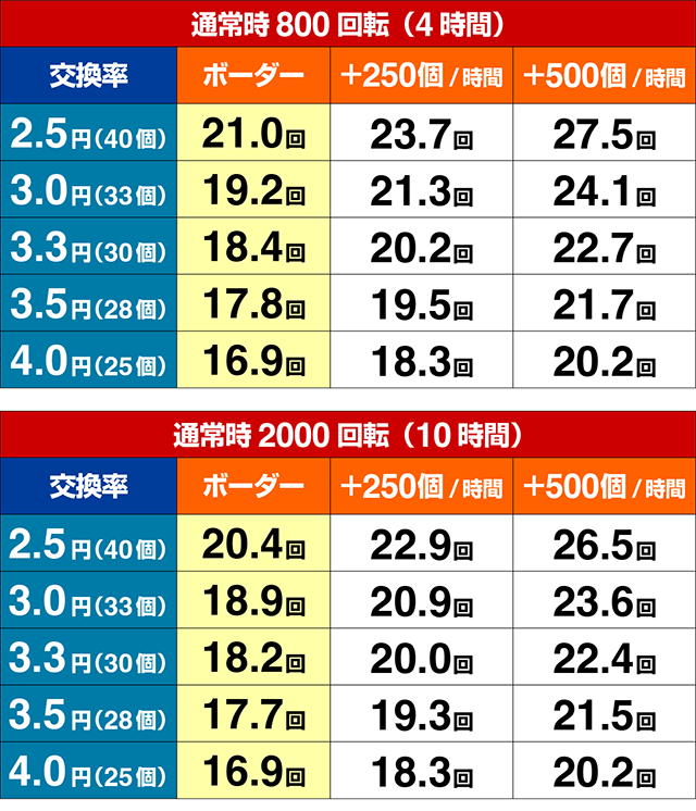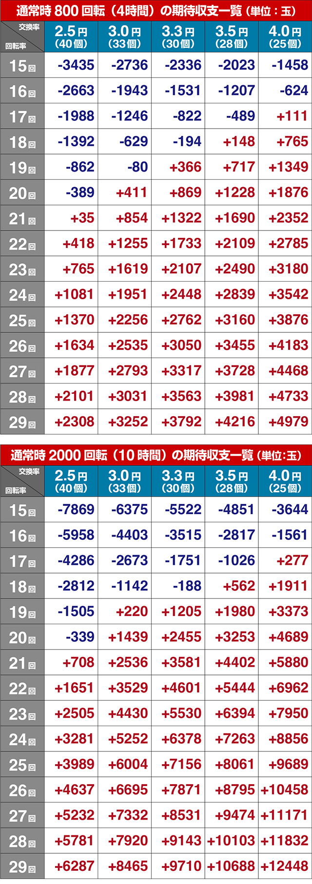 ※電サポ中の出玉増減-5%、通常時2000回転(10時間)から算出
