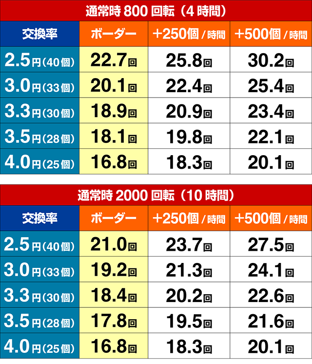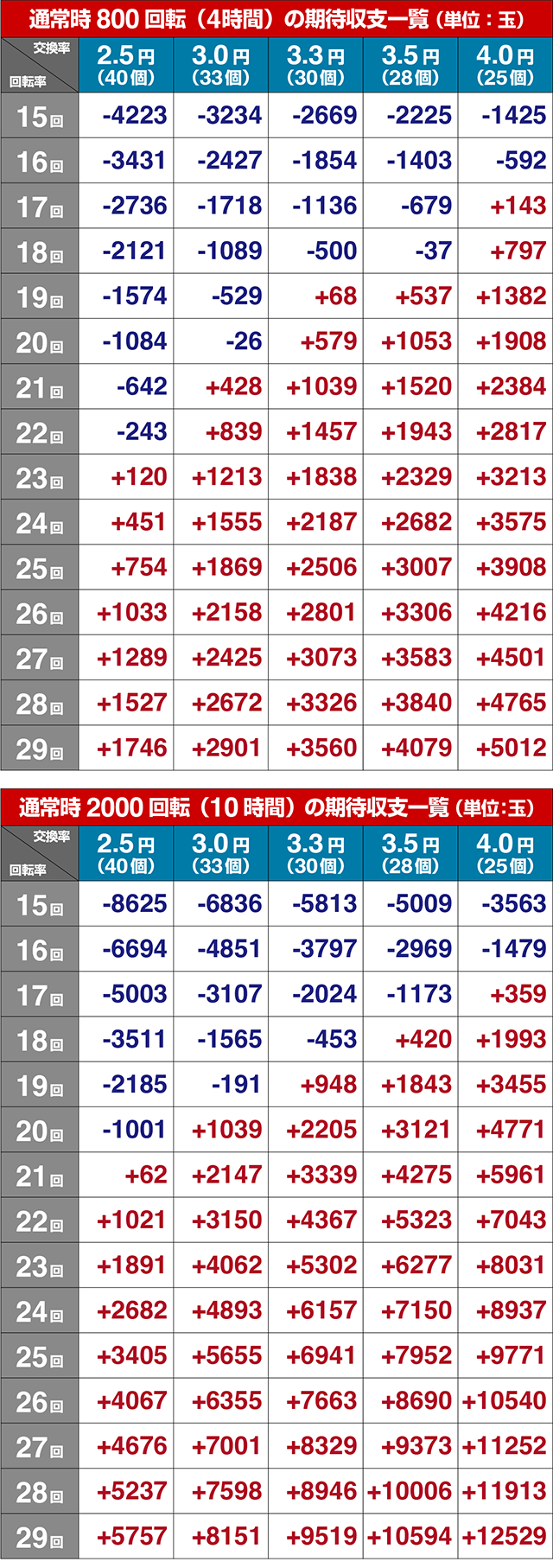 ※電サポ中の出玉増減-5%、通常時2000回転(10時間)から算出