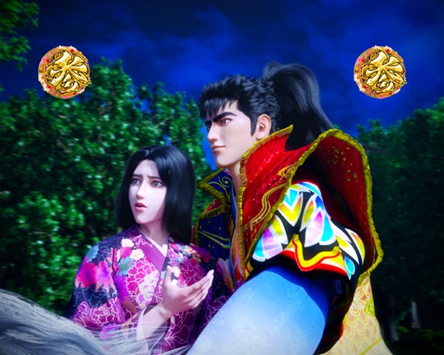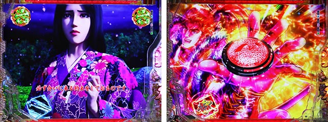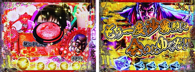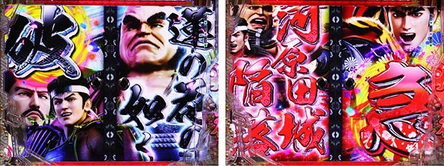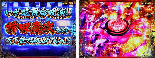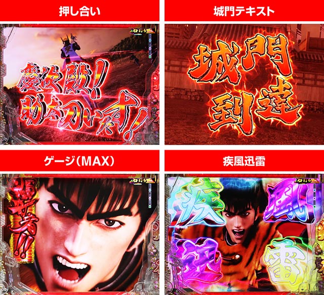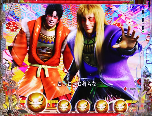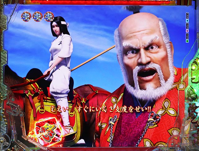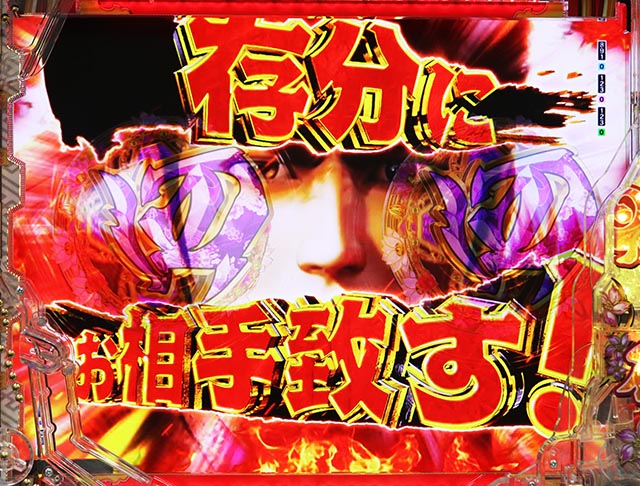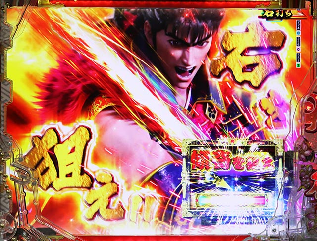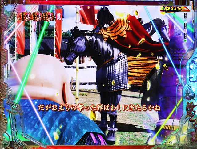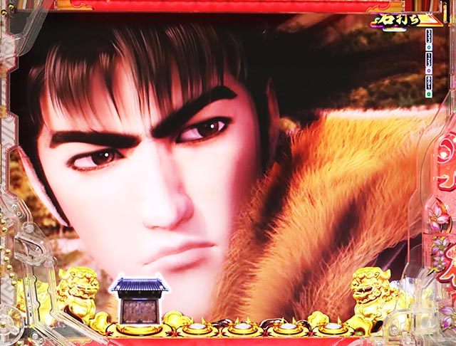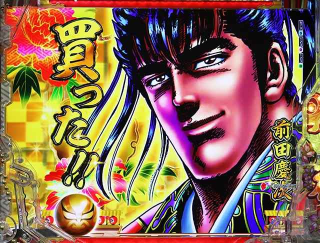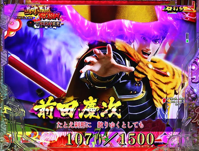 液晶上部からマントがみえると昇格のチャンス。慶次が登場すれば3000BONUS昇格が濃厚だ。一騎駆RUSH中は6R目以外で発生すると大チャンス!