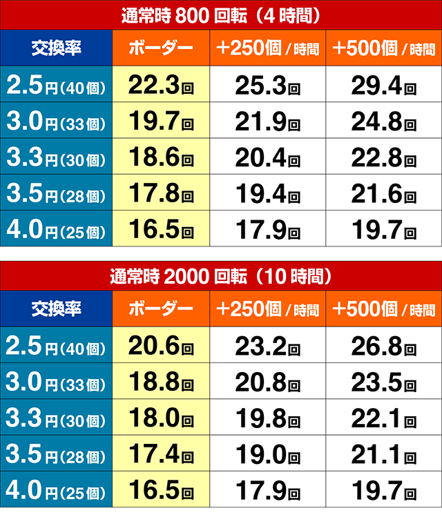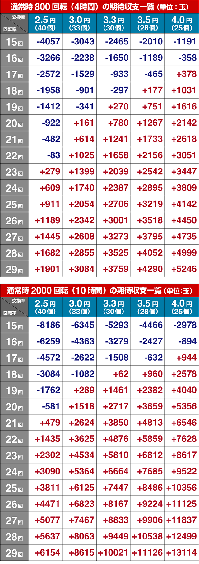 ※電サポ中の出玉増減-5%、通常時2000回転(10時間)から算出