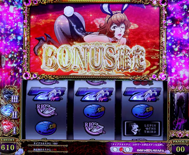 不二子タイム中のBIGは基本的にリプレイとの同時当選。リーチ目契機の当選はすべてスーパーBIGになる(リプレイ契機のスーパーBIGもある)。