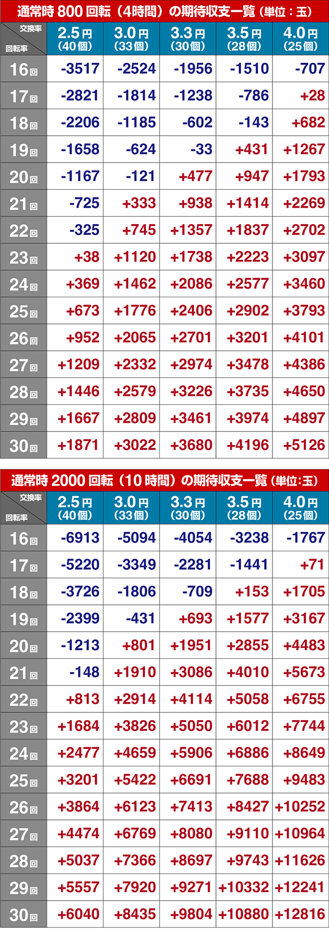 ※電サポ中の出玉増減-5%、通常時2000回転(10時間)から算出