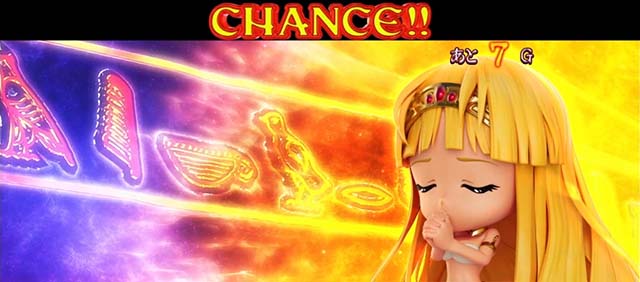 演出発生頻度が低下して、 告知が全て「神の開眼演出」に変化 |