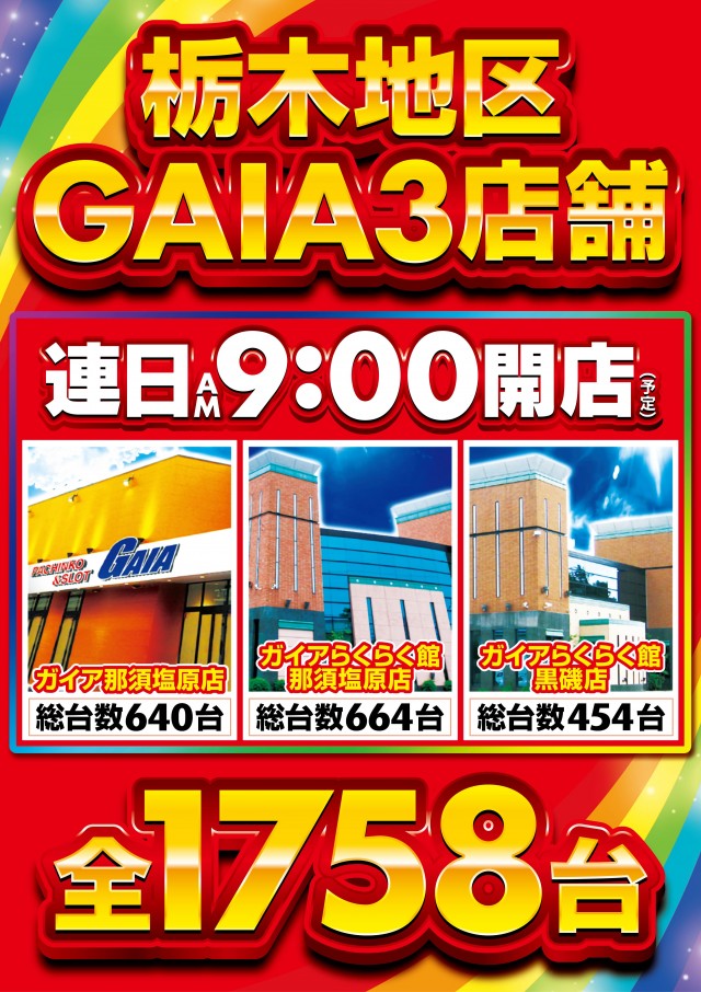 栃木地区GAIA3店舗!!連日AM9時OPEN!!