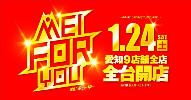 2026年もその勢いは止まらない 1月24日(土)MEI FOR YOU 愛知県全店合同賞品を入荷