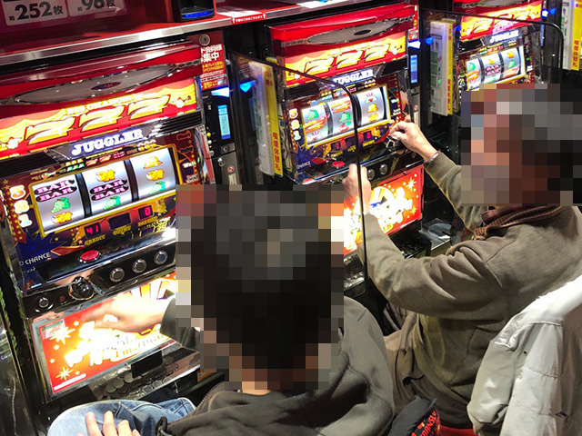 にぎわっている店内で、ひときわ盛り上がっていたのが「アイムジャグラーEX」と「アイムジャグラーEX-AE」だ。