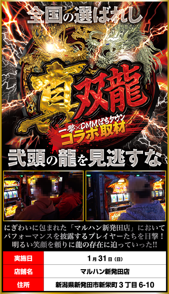 「マルハン新発田店」を舞台に「真双龍」をおこなった。