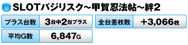 2台すべてがプラスで全台差枚数は+7,658枚だった。