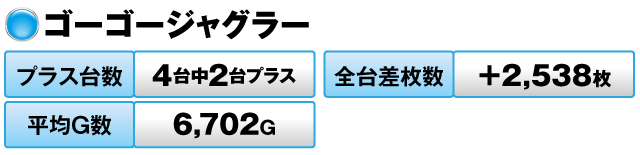 6台中5台がプラスで全台差枚数は+9,498枚を記録した。