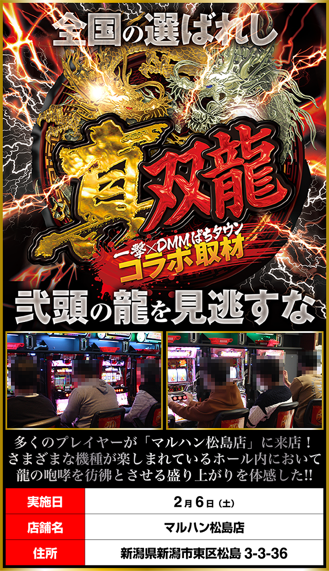 高稼働の機種が多く、ホール全体がにぎわっていた「マルハン松島店」。厚い支持を受けている理由が伝わってくる「真双龍」となった。