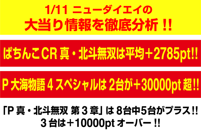 1月11日の日刊ぱちタウンでピックアップしたのは、500台以上の遊技台が設置されている「ニューダイエイ」。