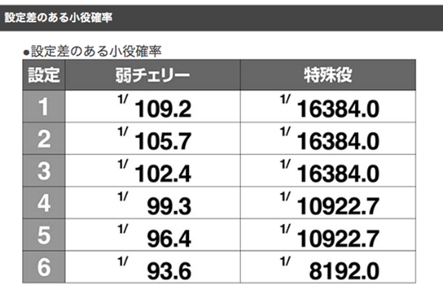 小役確率においては、弱チェリーと特殊役をチェック。状態を問わずにサンプルを集めよう。